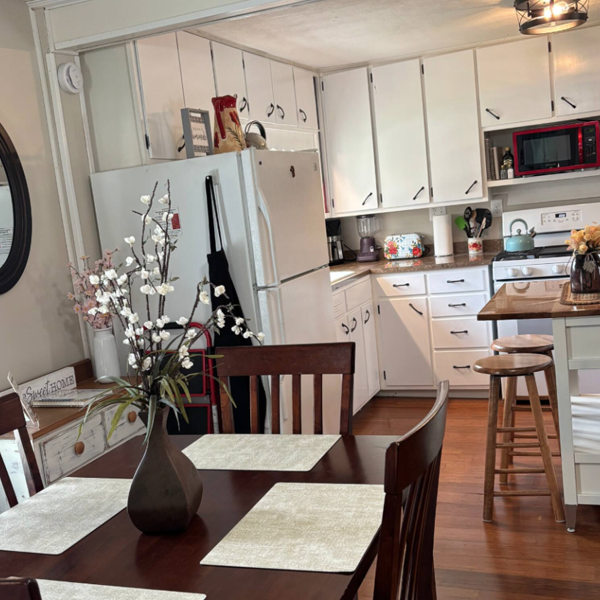 Bring the whole family to this great place with lots of room for fun. Perfect for those longer stays. One bedroom with a king bed, one bathroom. Full kitchen with dining area and dishwasher. One futon couch that folds down to an extra bed and one queen air mattress. Desk for any office work. Washer and dryer. Walking distance to Main St. Market & Deli, Casey’s convenience store, Scrumdiddly Bakery, Dollar General, and Teena’s Pizza. Find more information on Airbnb.