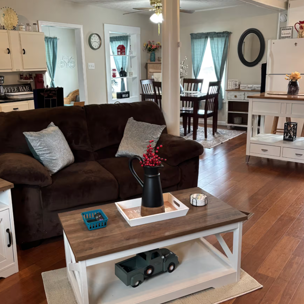 Bring the whole family to this great place with lots of room for fun. Perfect for those longer stays. One bedroom with a queen bed, one bathroom. Full kitchen with dining area and dishwasher. One futon ottoman that folds down to an extra bed. Desk for any office work. Washer and dryer. Walking distance to Main St. Market & Deli, Casey’s convenience store, Dollar General, and Teena’s Pizza. Close to Salem, Louisville, and Indy. Visit their listing on Airbnb for more information.