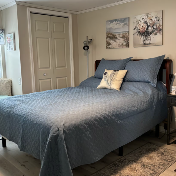 This cozy cottage in Southern Indiana is 30 miles from Louisville. The home is 14 miles to the Salem Speedway, and 10 miles to Huber's Winery. Enjoy 20 acres of woods with hiking trails and 2 creeks. The 1½ story 1440 sq. ft. Cottage has a detached garage, open floor plan, fully stocked kitchen, firepit and bright Sunroom! This home sleeps 4 and is more than just a place to rest your head - it's a retreat for your mind, body, & soul. Enjoy the scampering of squirrels/ glimpses of deer off the back covered deck.